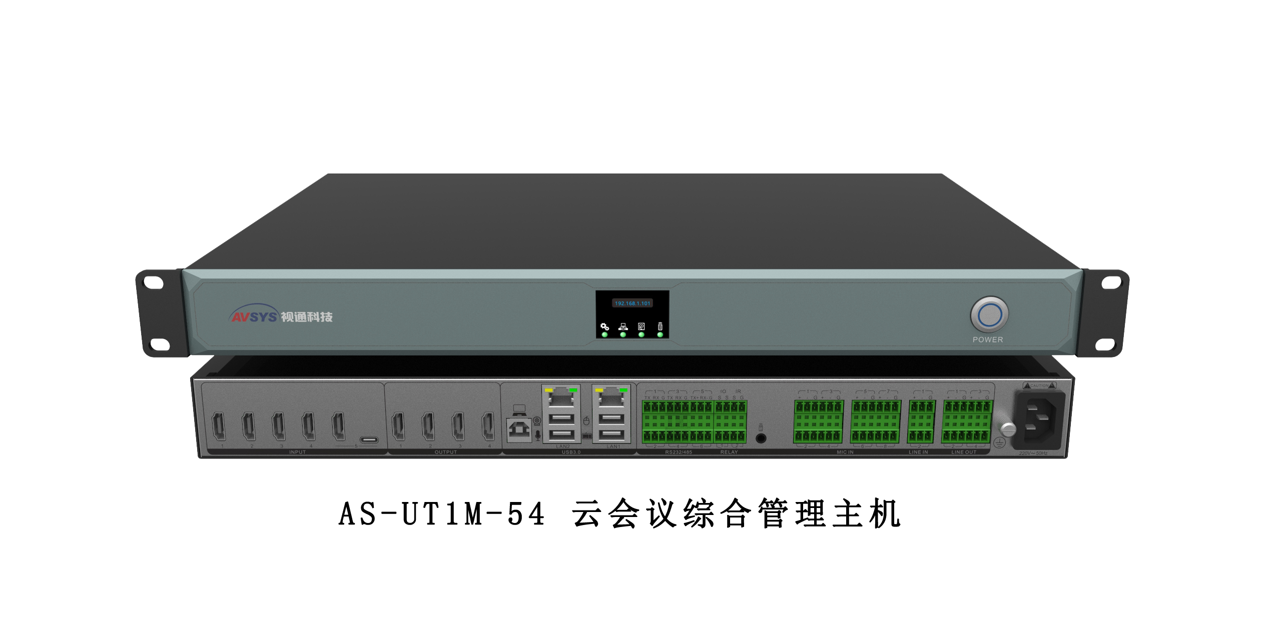 AS-UT1M-54云會議綜合管理主機,是一款針對中小型會議室設計的產品,主機集高清視頻矩陣,數字音頻處理,中控,遠程視頻會議,錄播以及智能摳像功能于一體。主機除對本地會議室設備進行可視化綜合管理外,同時還具備與第三方視頻會議或MCU多方互聯互通的能力,如華為,中興,Polycom等廠家的視頻會議產品。以及主機內置了智能摳像功能,搭配會議攝像機、PC(培訓PPT),通過主機內部摳像算法處理將人物摳像畫面與PPT畫面疊加輸出,結合云視頻會議軟件(如:騰訊、釘釘、Skype、ZOOM)可進行遠程會議直播培訓。該產品廣泛應用于中小型會議室、遠程視頻會議、會議直播培訓等應用場景。